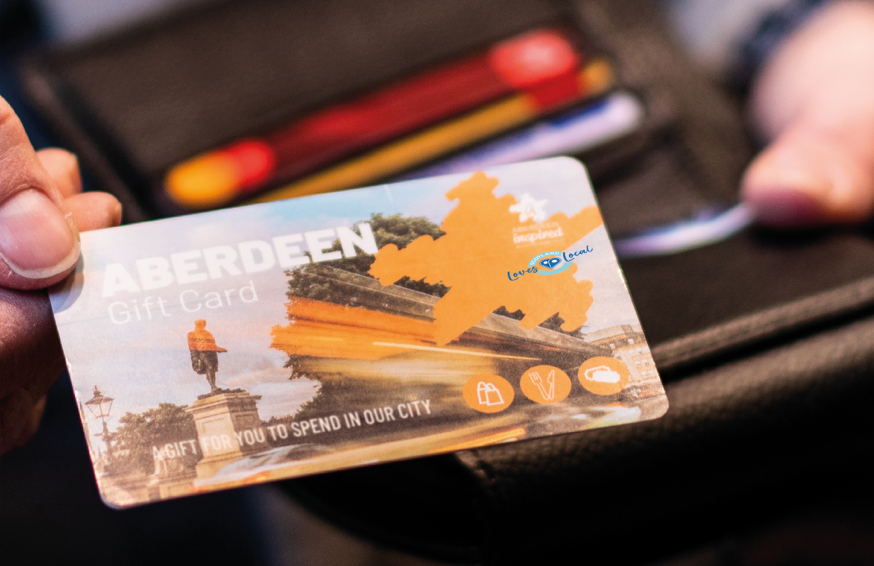 Aberdeen’s Gift Card is one of the existing district gift cards that benefits from the Scotland Loves Local brand, as part of the Scotland Loves Local Gift Card introduced by Scotland’s Towns Partnership in 2021.